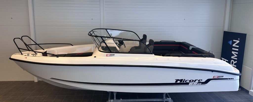 Med rutor från sida till sida av båten, kompletterade med en bred gångdörr i mitten ger stora vindskyddade ytor för både förare och för de som sitter i den bekväma u-soffan i aktern. Utmärkt för dem som vill åka lugnt och vindskyddat och prefekt för det sociala sjölivet!